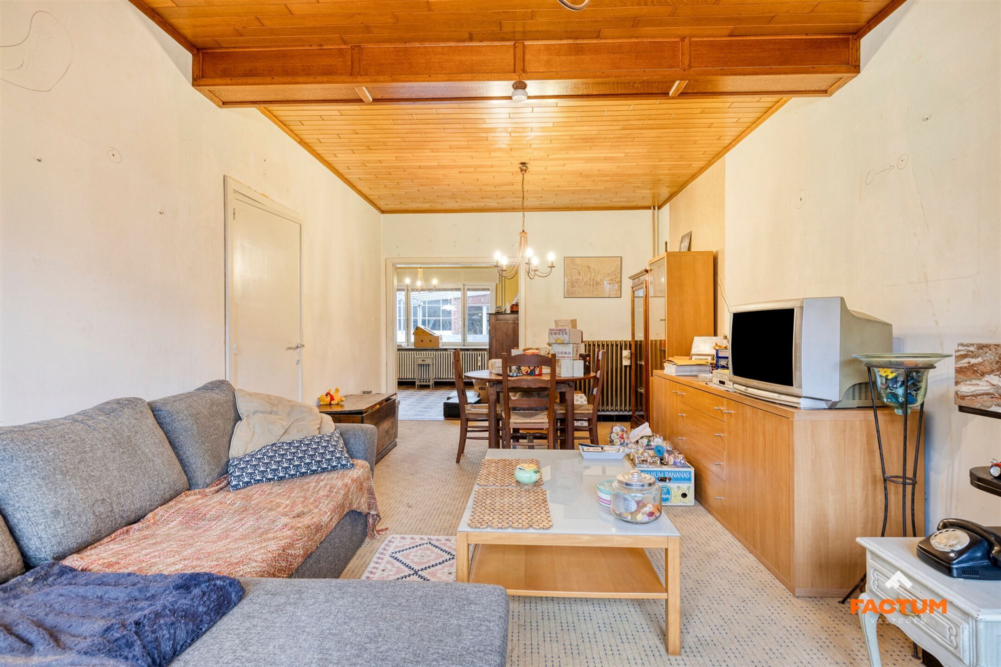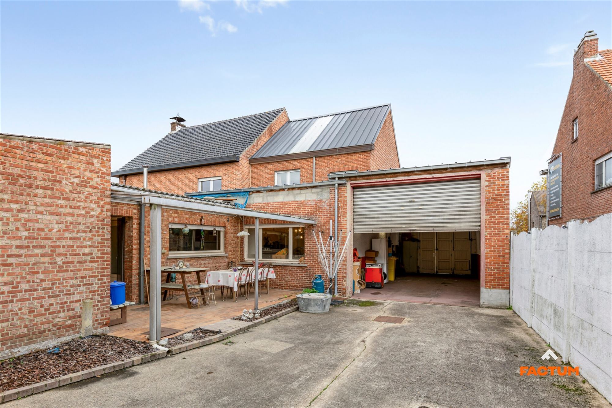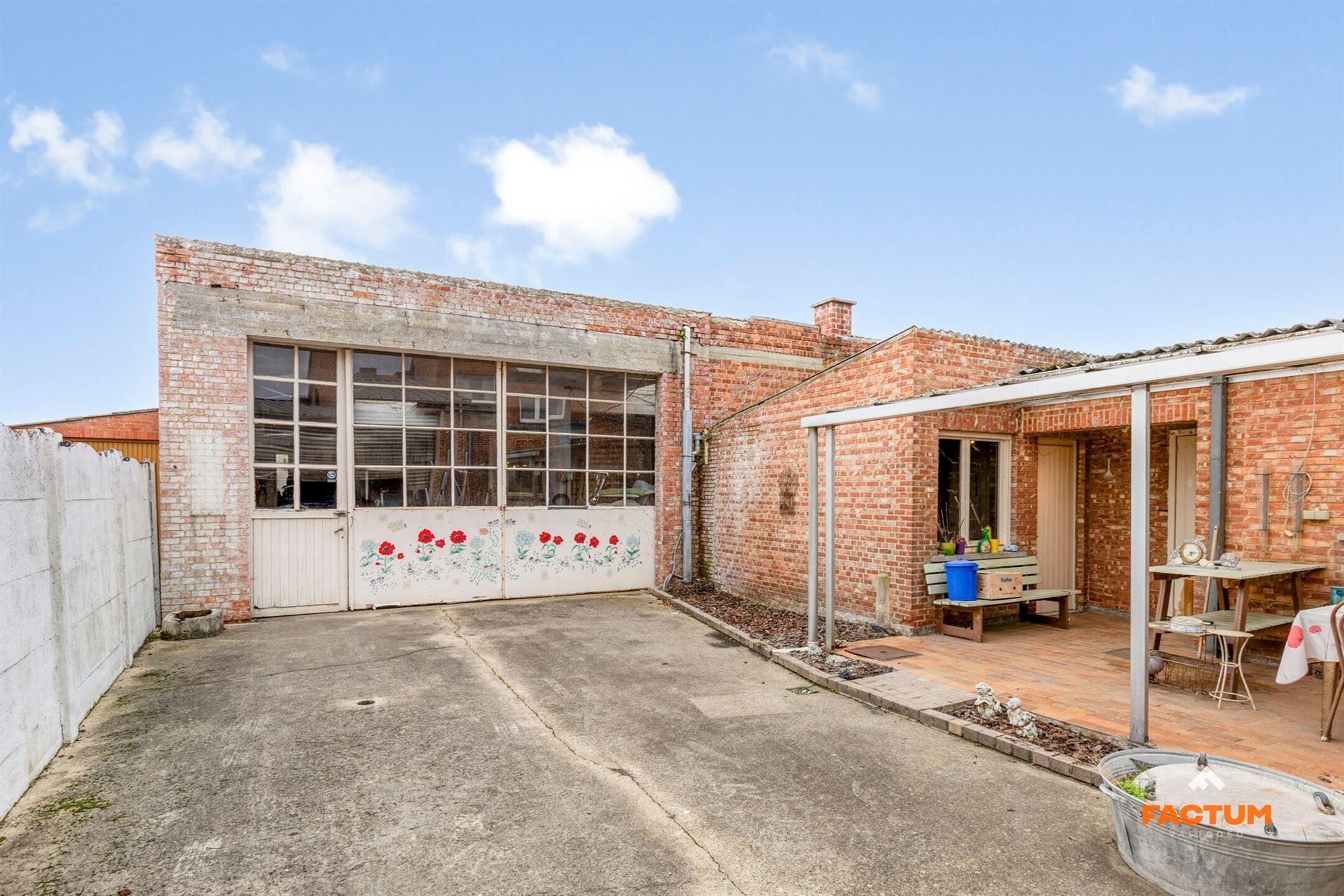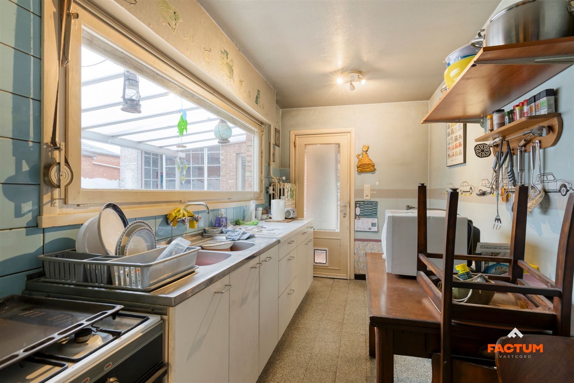 De woning beschikt over drie volwaardige slaapkamers en biedt een solide basis om volledig naar eigen smaak te renoveren. Via een doorgang met hoge poort aan de woning krijgt men toegang tot het achterliggende perceel.