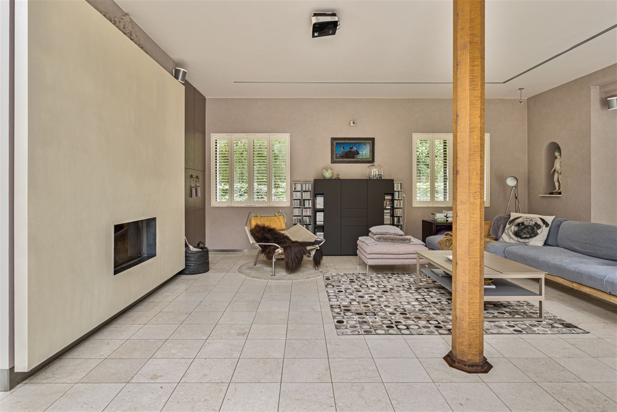 Gelegen aan het einde van een rustige dreef, te midden van een groene oase, ligt een woning die niet zomaar gebouwd is om in te wonen, maar om beleefd te worden. Hazendreef 11 is een schoolvoorbeeld van hoe architectuur, natuur en beleving in elkaar kunnen overvloeien. Oorspronkelijk werd deze woning eind jaren zestig bewoond door architect René Vander Auwera, een naam die in het Vlaamse architectuurlandschap bekendstaat om zijn eigenzinnige, maar doordachte benadering van ruimte. De huidige eigenares liet het hoofdgebouw in een latere fase hertekenen door architect Paul Beyens uit Pulderbos, met wie zij intensief samenwerkte om de woning te transformeren tot een harmonieus geheel waarin eenvoud, rust en karakter centraal staan.